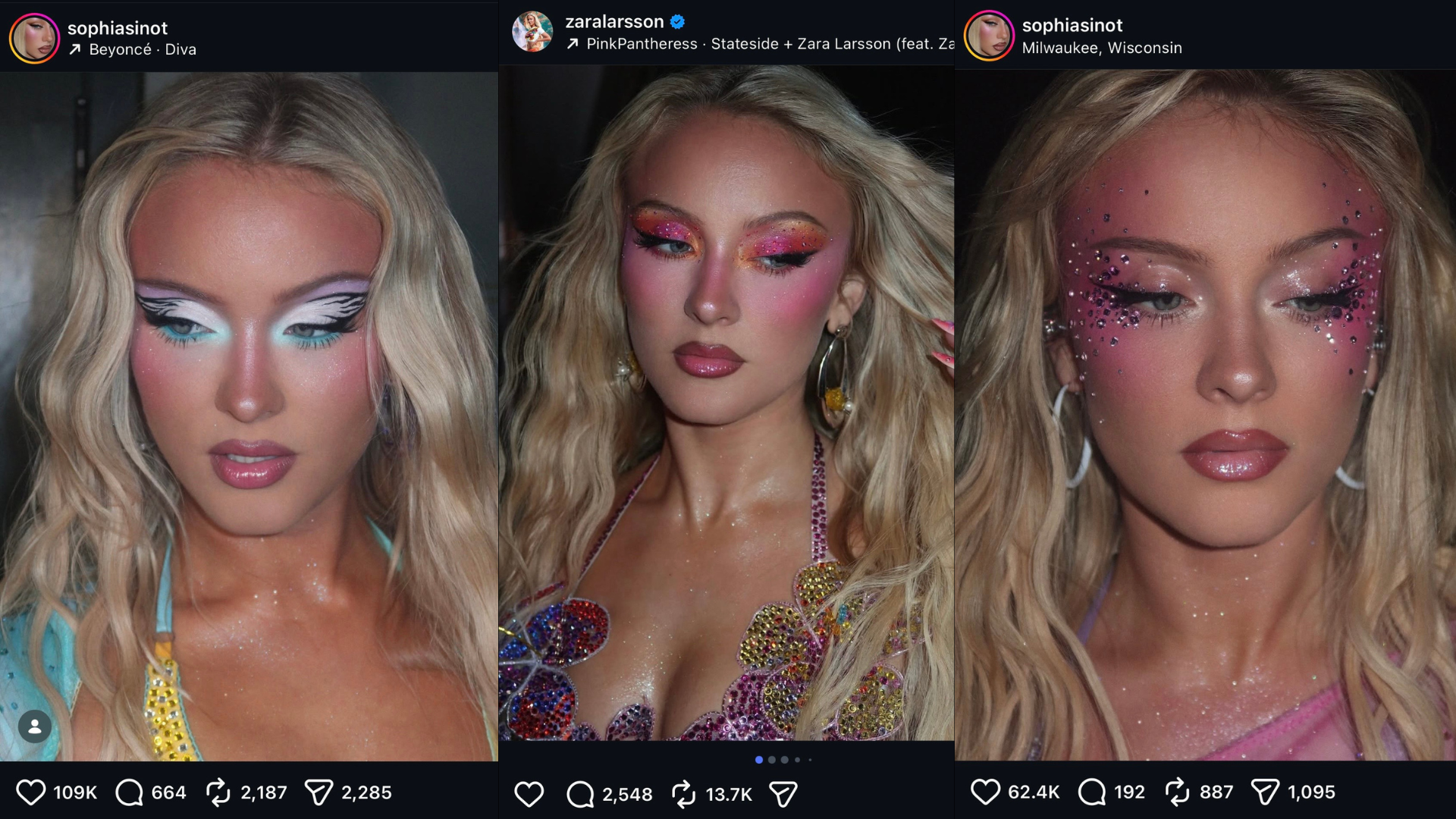 Celebrities and makeup artists are helping make this trend more popular. Makeup artist Sophia Sinot is spearheading this trend by crafting bold, sparkly, Y2K-inspired looks on singer Zara Larsson during her Midnight Sun tour, gaining huge attention on TikTok and Instagram.